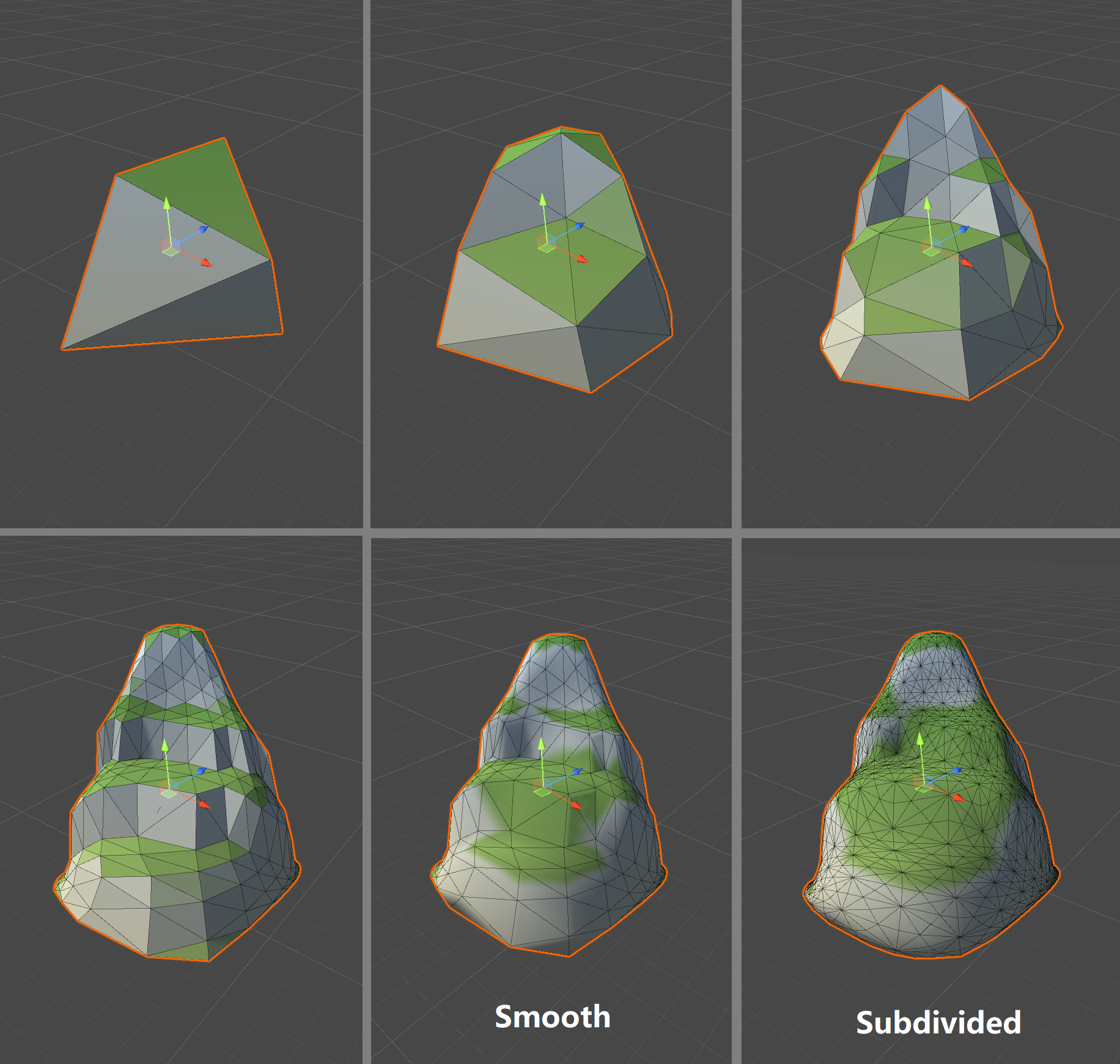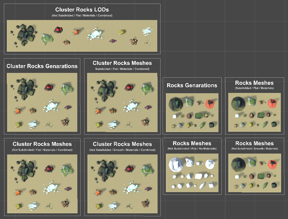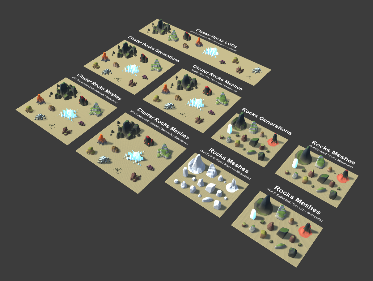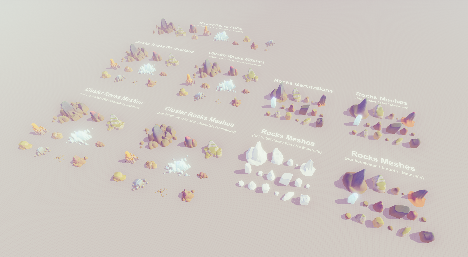 - Subdivided Meshes — High-detail rock geometry for close-up or hero assets