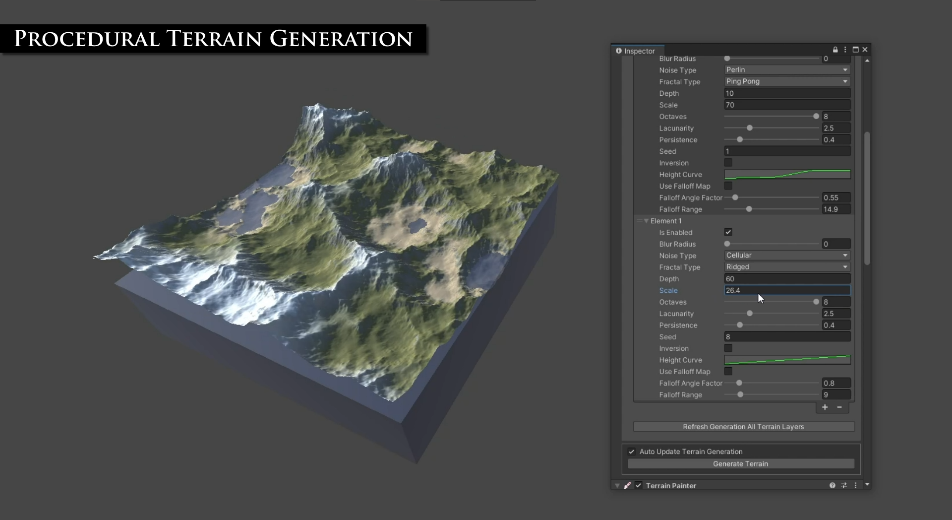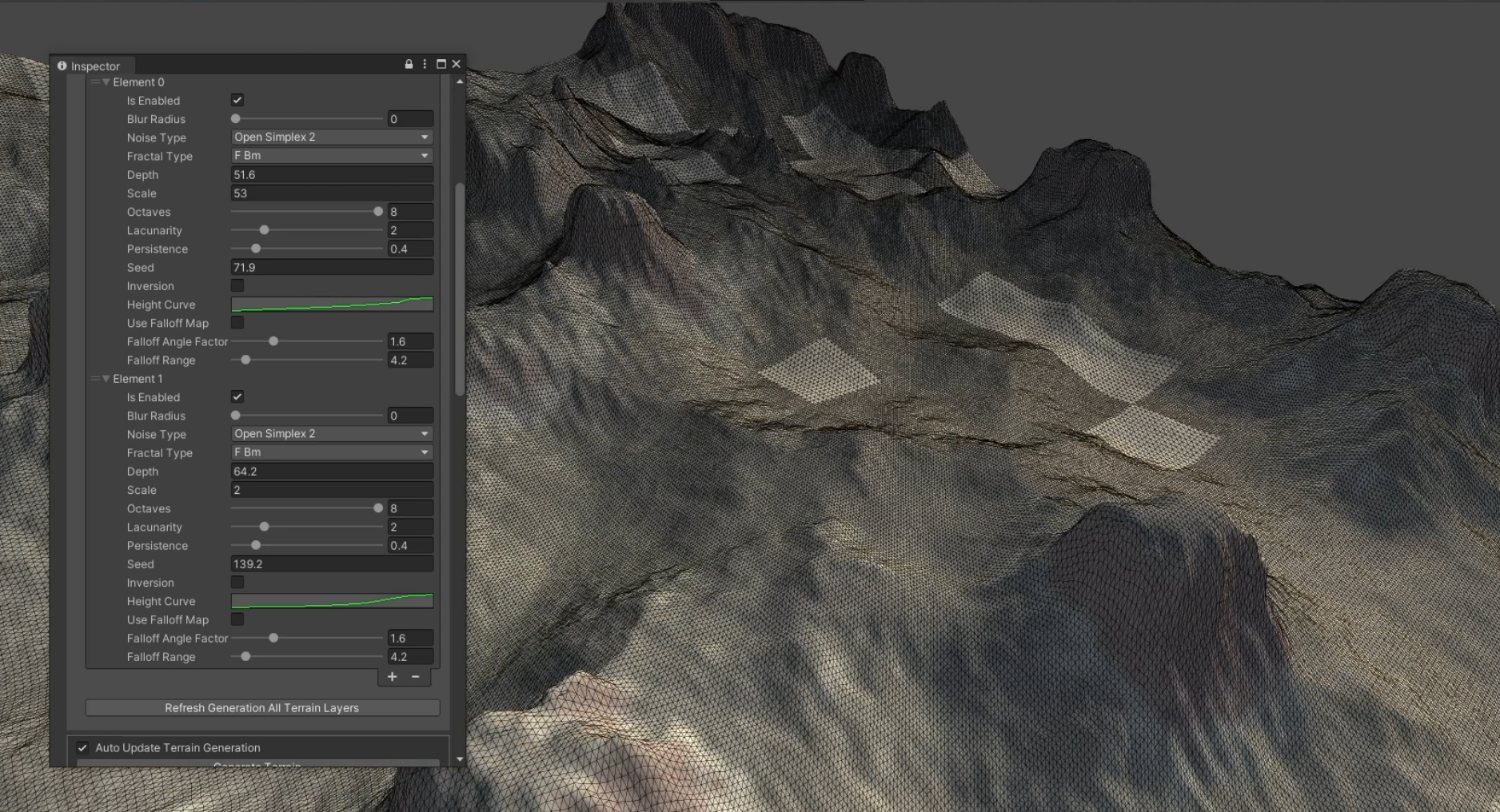 - FastNoiseLite Noise Engine — Advanced noise algorithms generate infinitely varied terrain with full customization of noise characteristics and layering