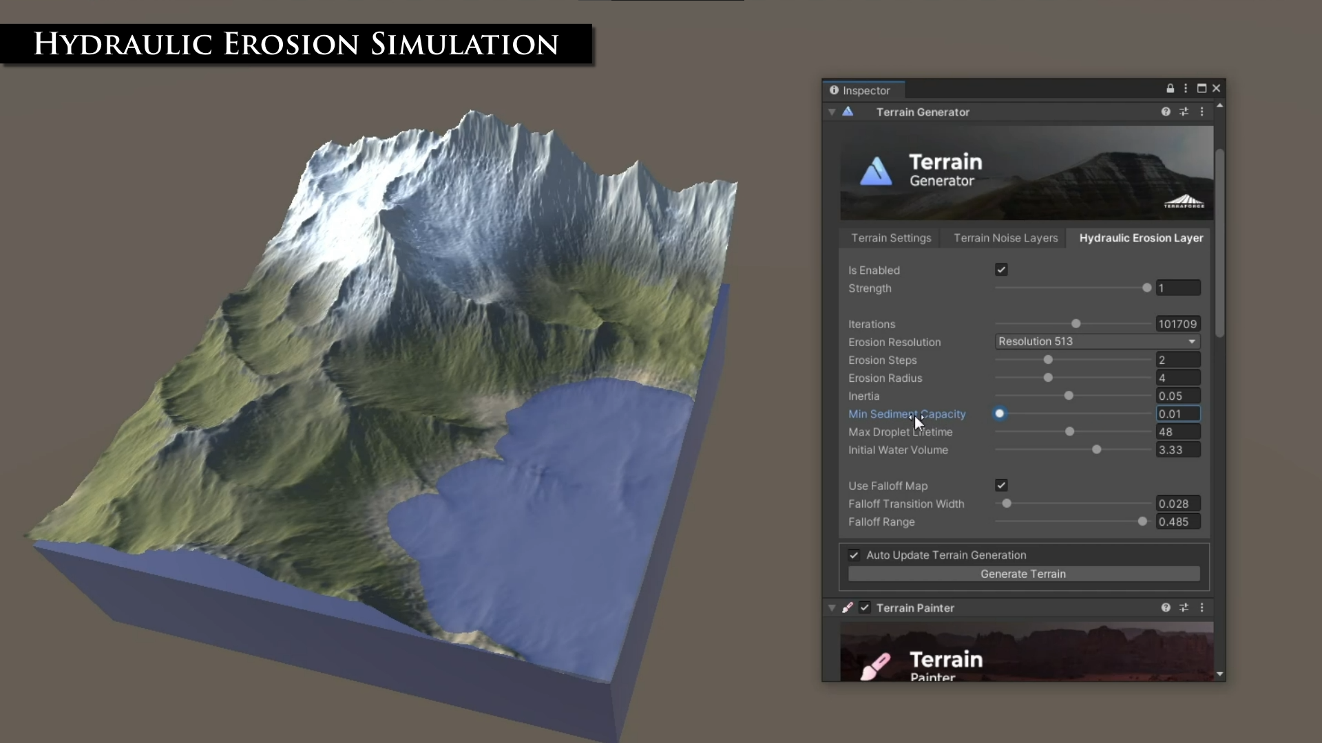 - Natural Process Simulation — Simulates rainfall and water flow to create realistic erosion patterns