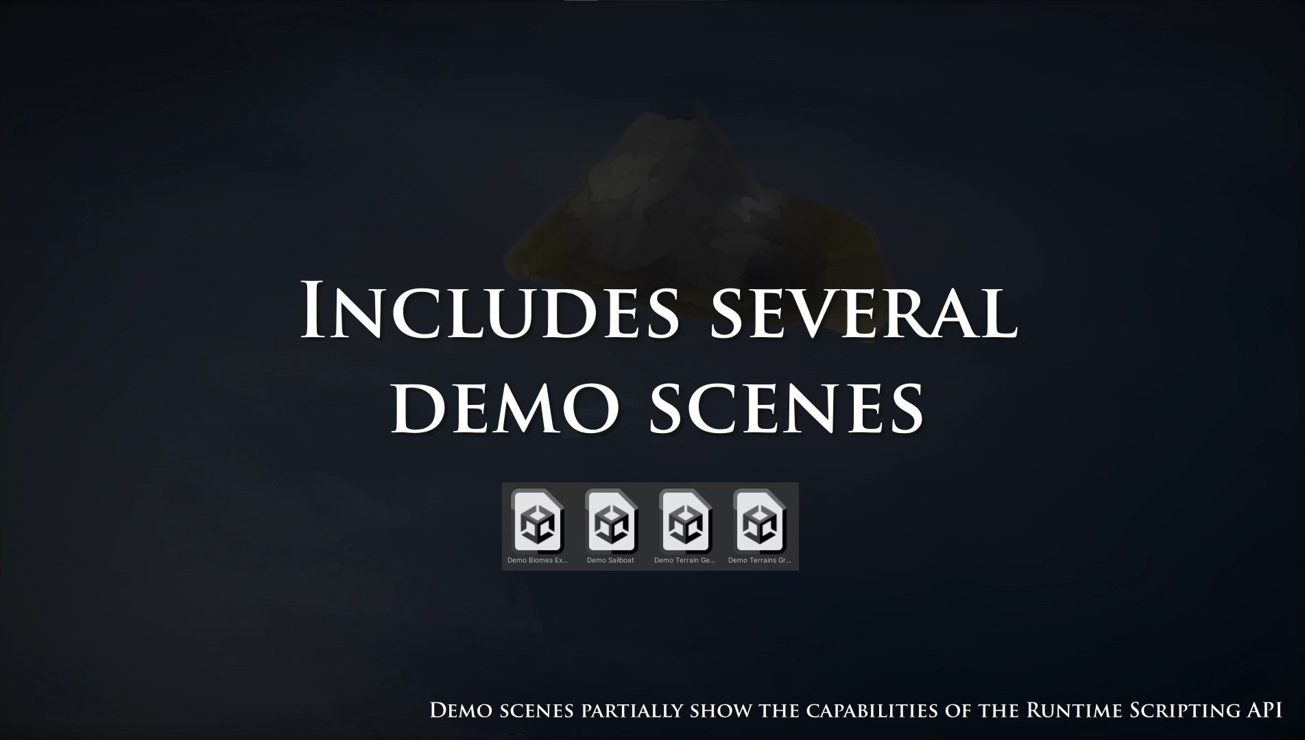 Control terrain generation and modification programmatically through C# scripting. Generate terrains on-demand during gameplay, dynamically customize environments, and integrate procedural terrain with your game systems.