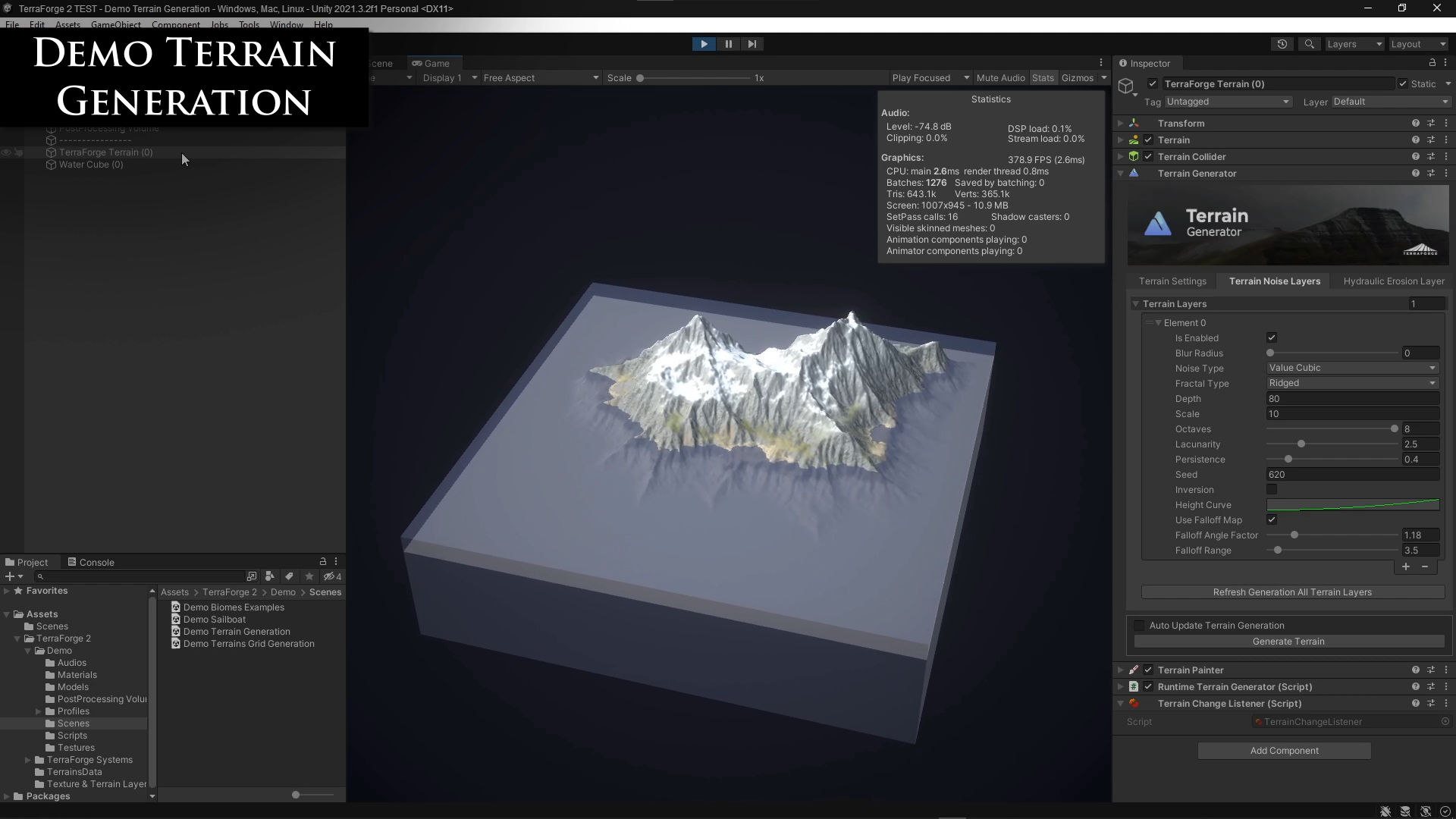 - Editor and Runtime Generation — Generate terrains while working in the editor, or procedurally generate them dynamically during gameplay