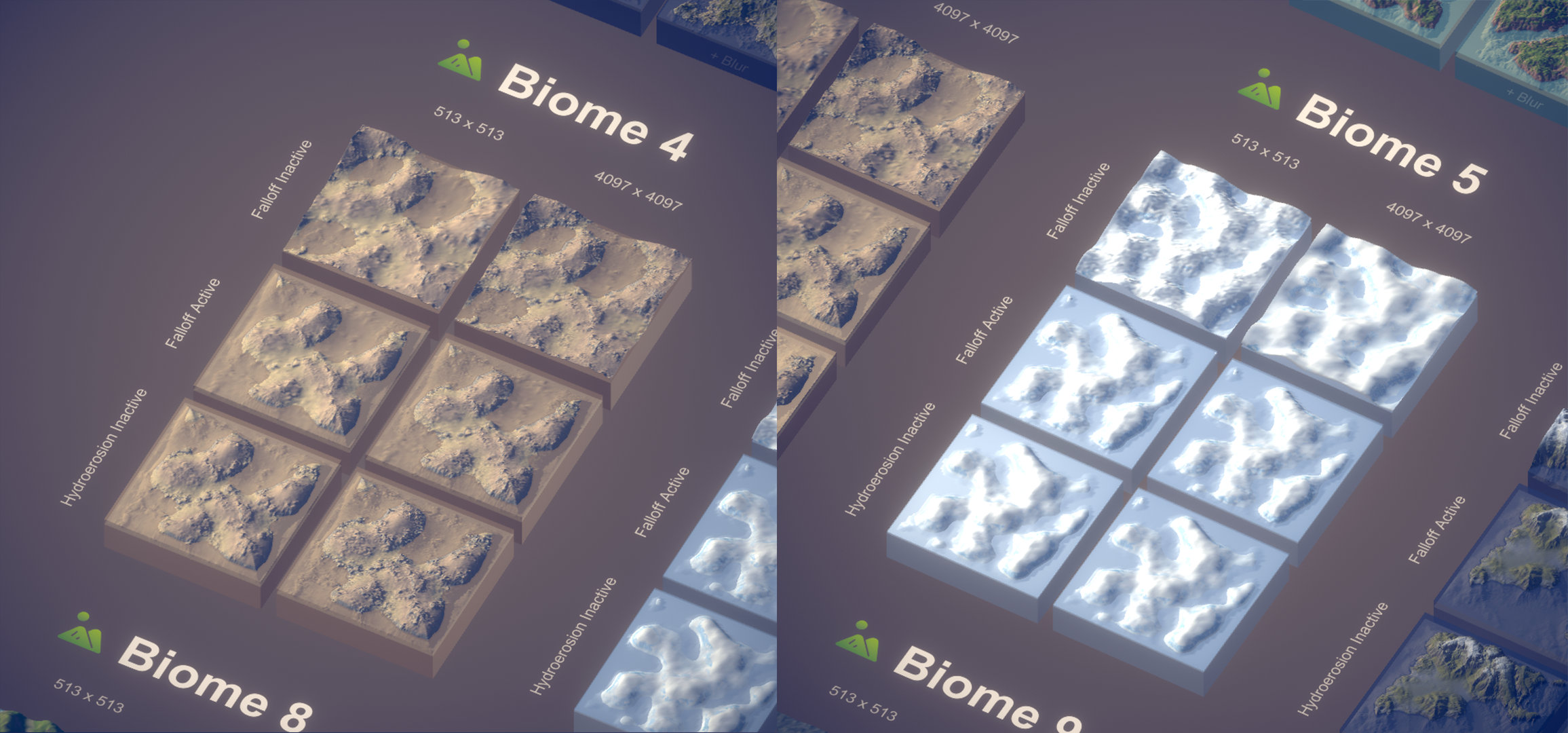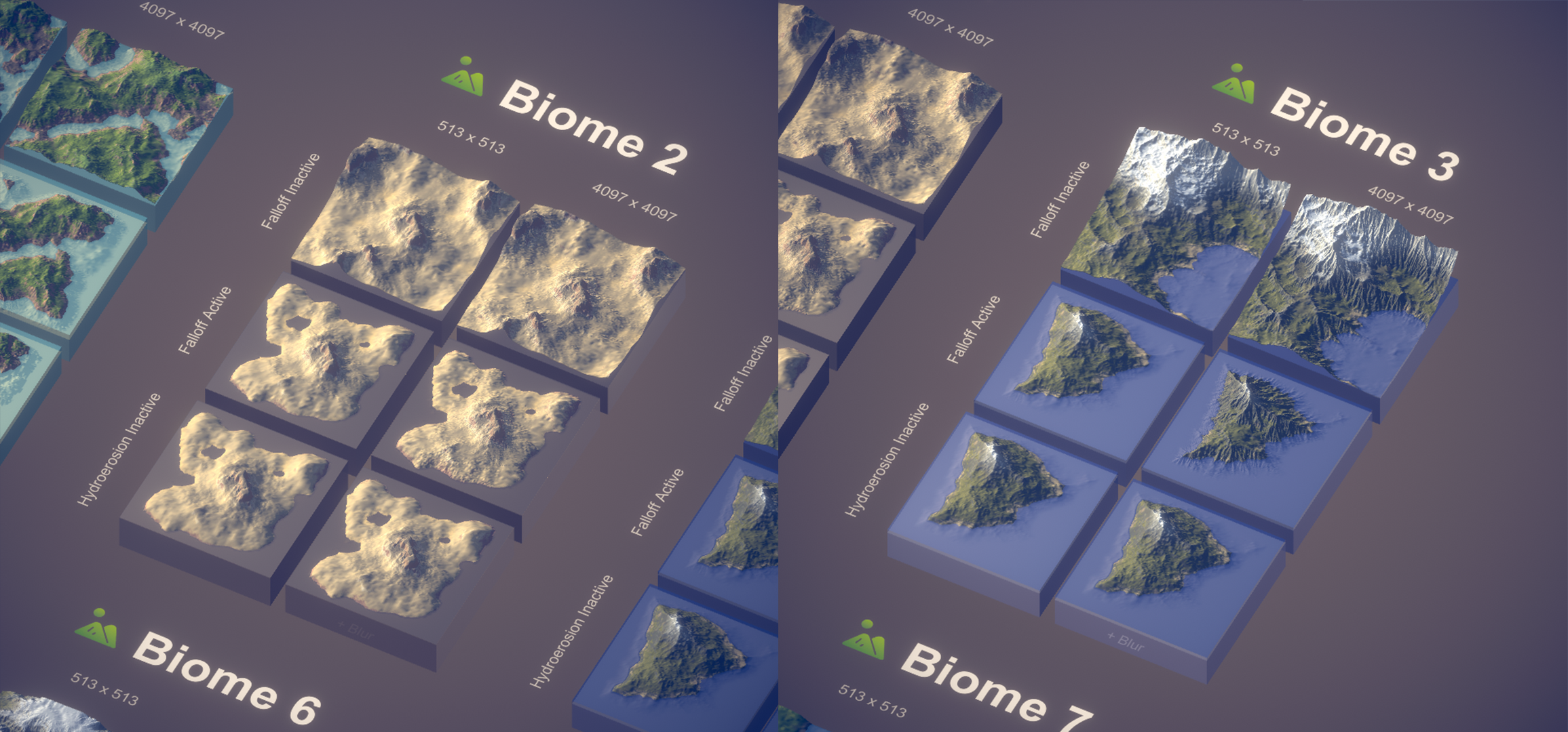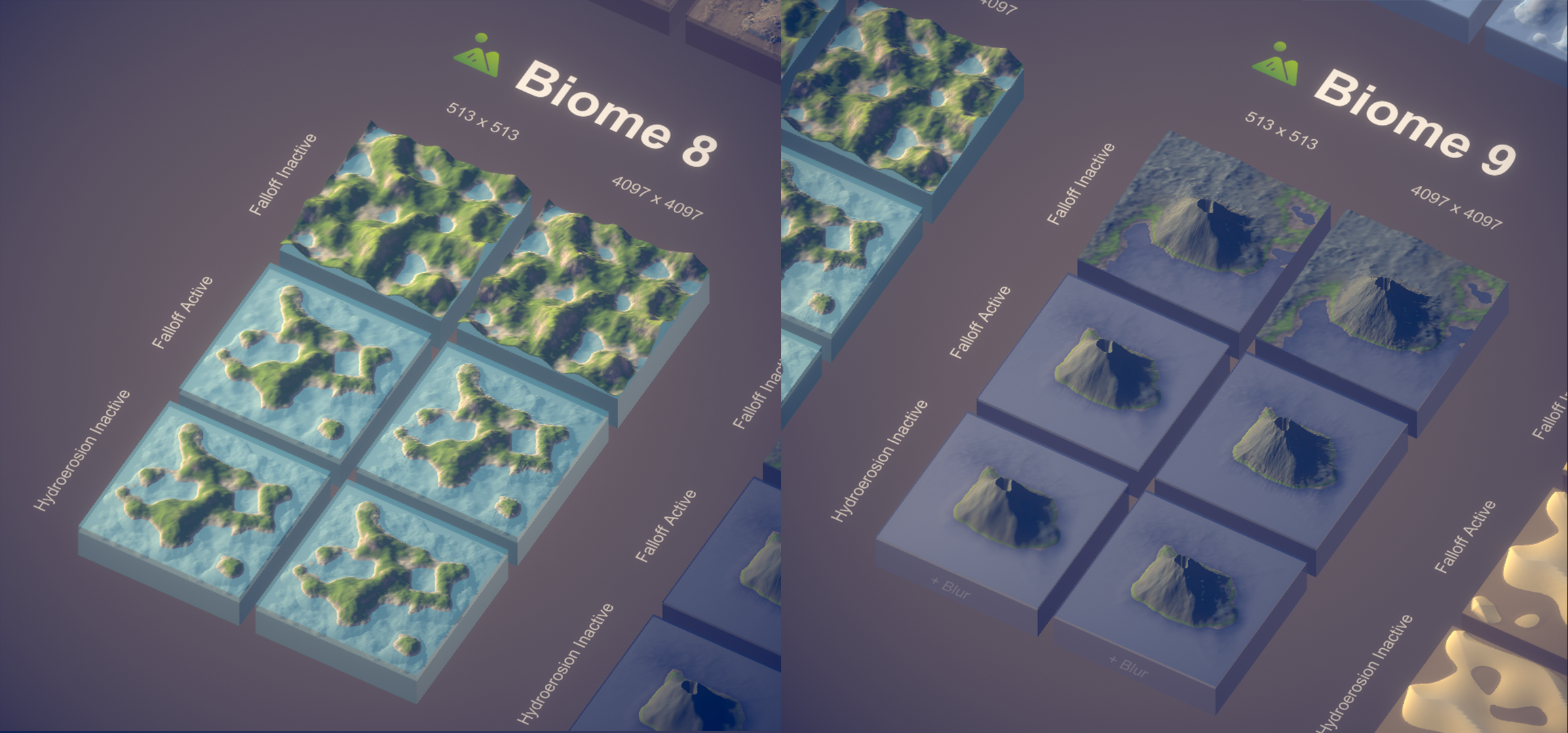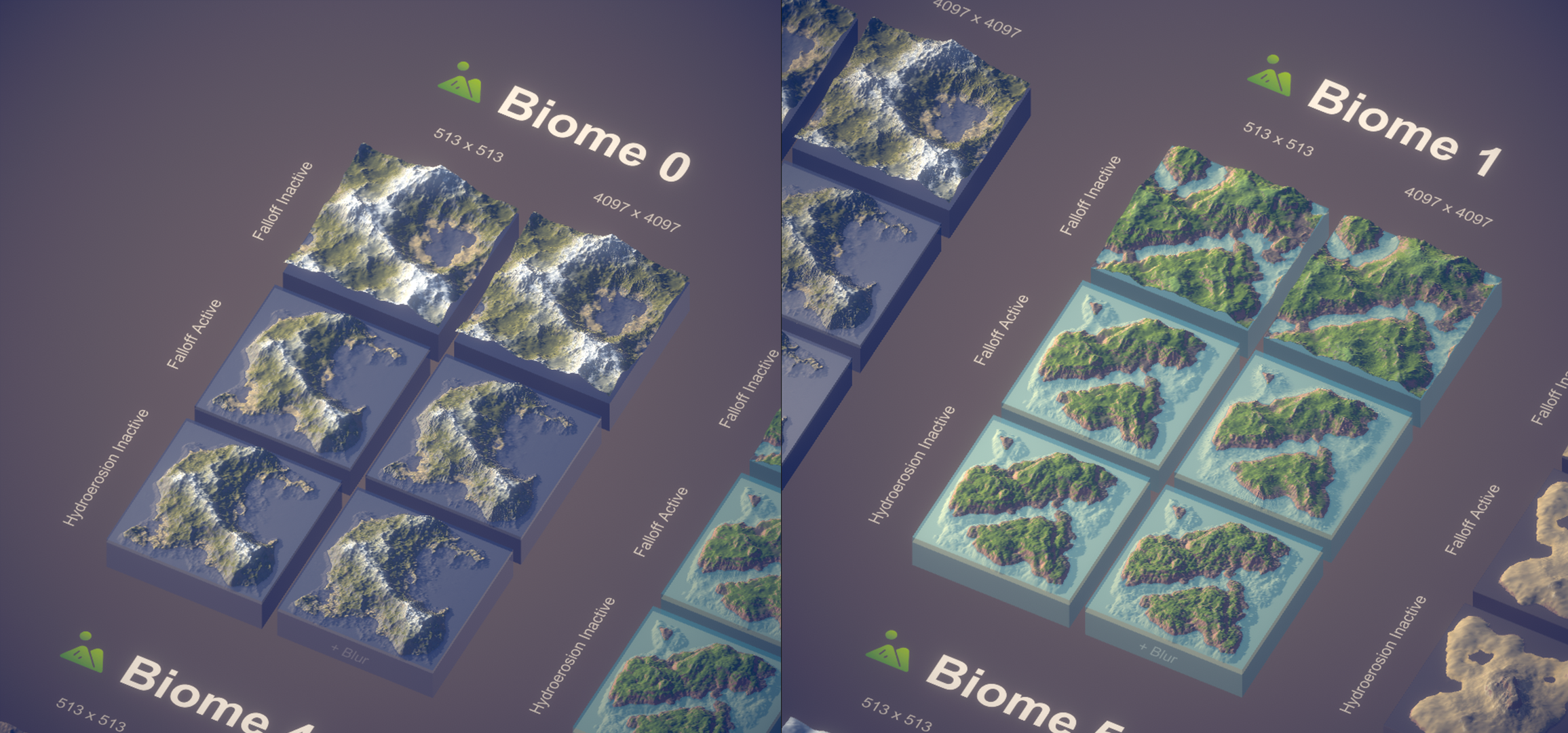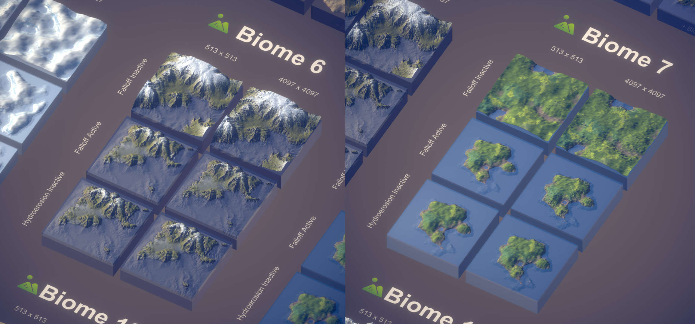 - Independent Biome Configuration — Each terrain in a group maintains its own unique biome characteristics and visual style