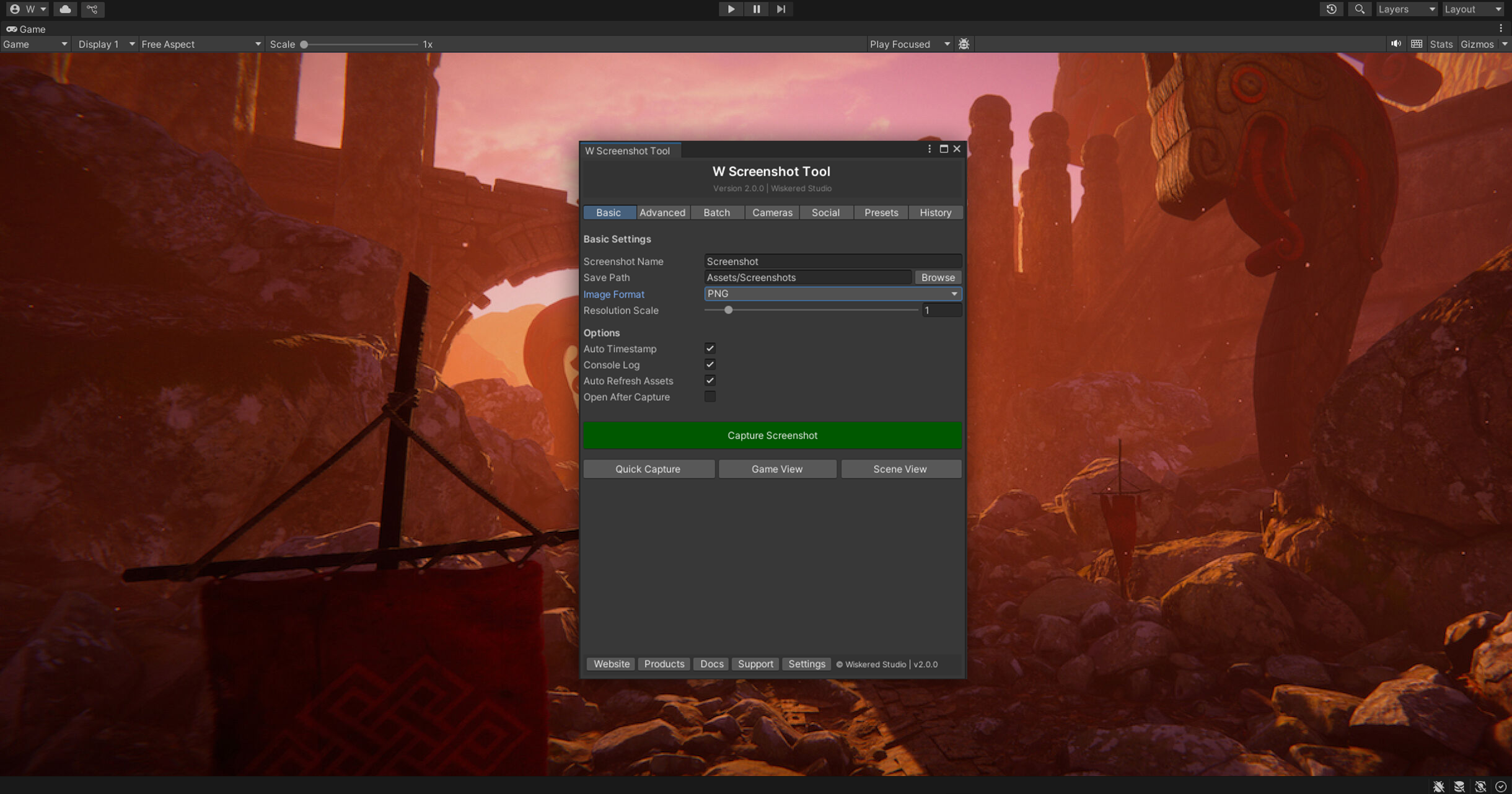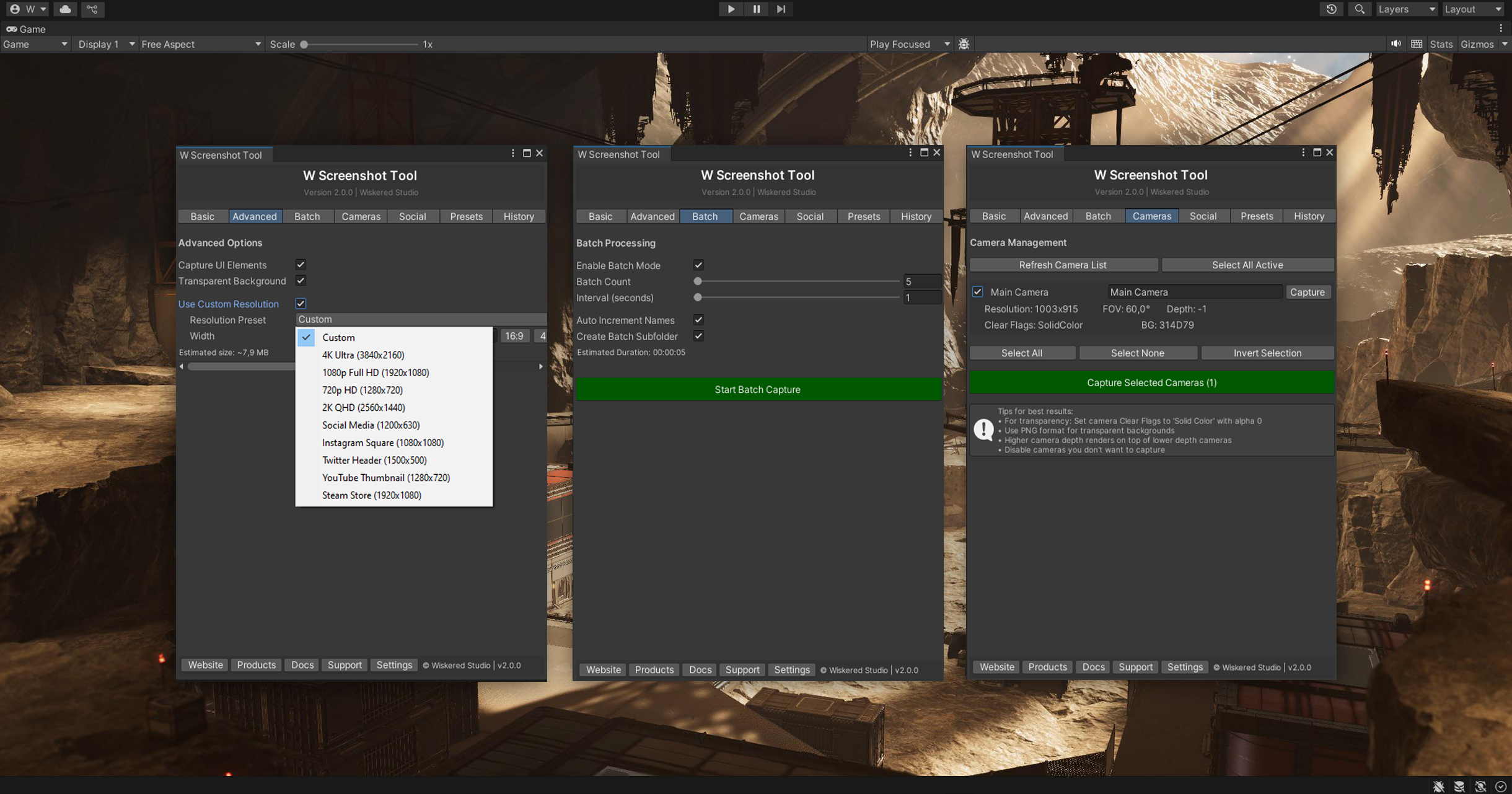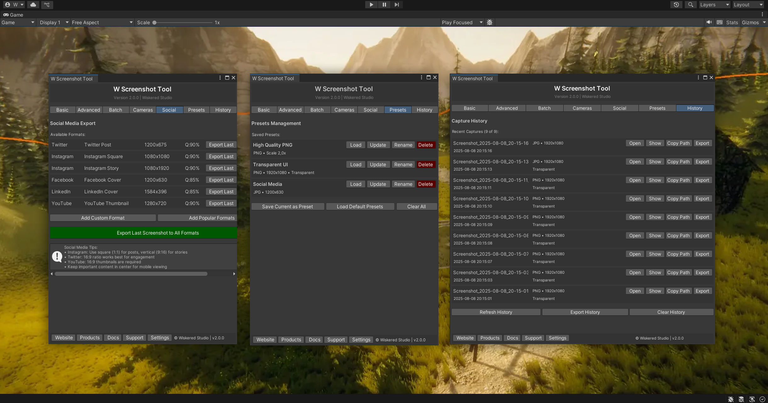 W Screenshot Tool is a free, lightweight Unity utility that simplifies screenshot and video capture directly from the editor. With support for 4K resolution and multiple render pipelines, it provides a straightforward way to capture and document your project without external tools.
